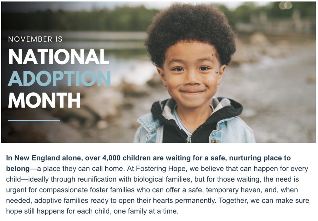 With nearly 20,000 youth living in foster care in New England and 100,000 waiting to be adopted nation-wide, faith compels the Christian community to meet the need for more safe and supported homes by extending hospitality to children and families in our community. If you’ve thought about becoming a foster or adoptive parent, now’s the time to take the next step!